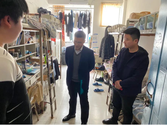 章书记还检查了第一寝室长宿舍(党员寝室)、辅导员值班室、男女宿管委办公室、以及员工洗盥室等,与宿管干部亲切交流,了解宿舍管理过程中存在的问题,并对在场师生提出了意见建议。